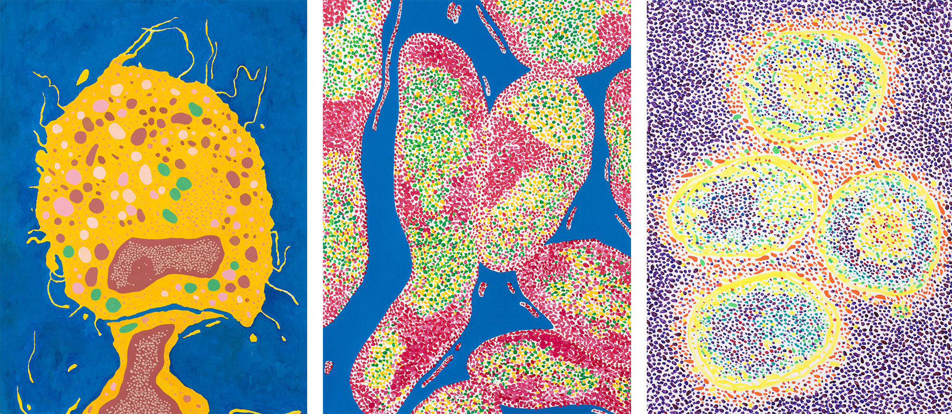 GLEB SKUBACHEVSKY: Pointillism turned out to be a perfect fit. Microscope images are often grainy because of the extreme magnification; you can’t achieve complete sharpness at that scale.