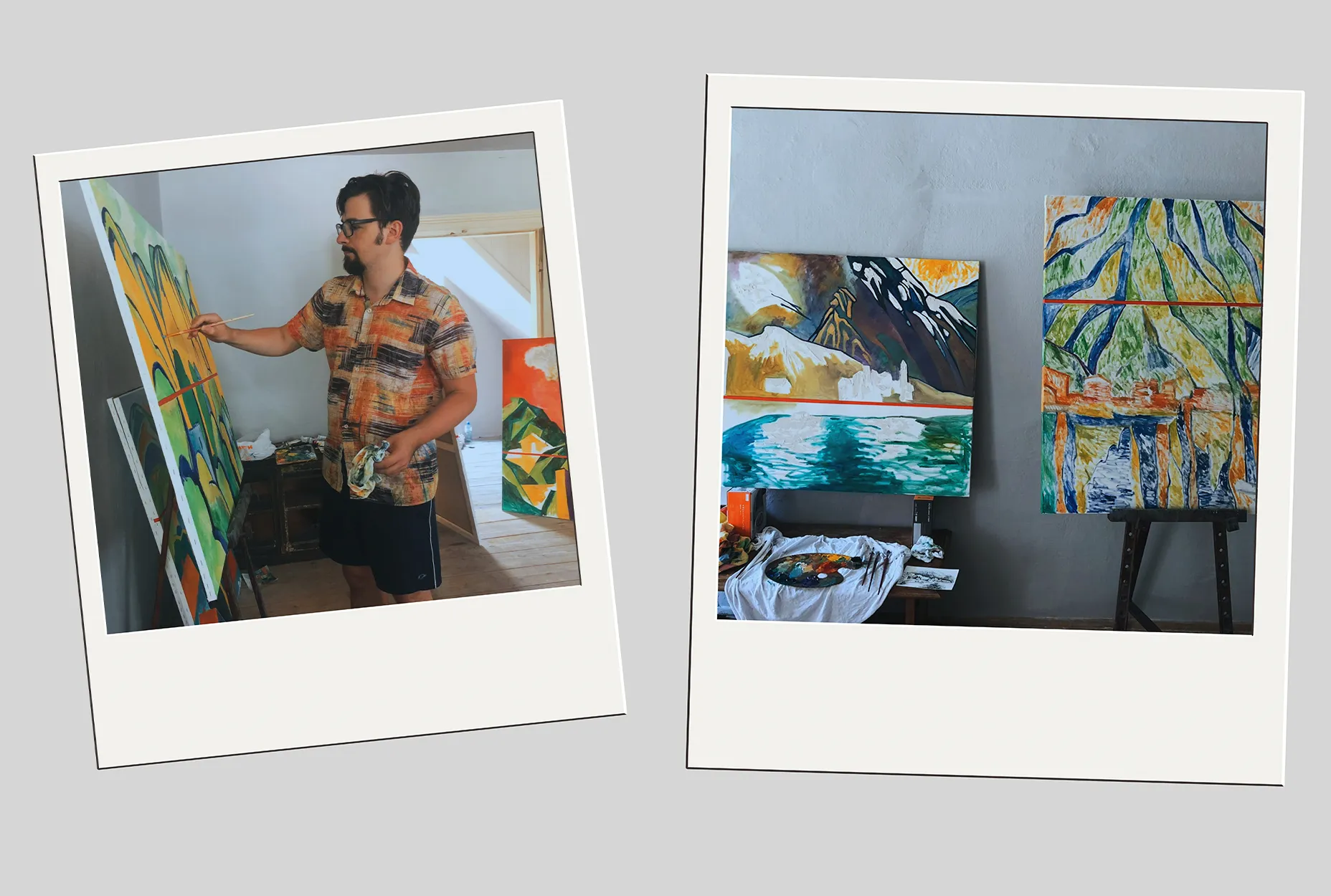 Gleb in Marat Gelman’s studio, Montenegro, 2019. Image courtesy of Gleb Skubachevsky.
