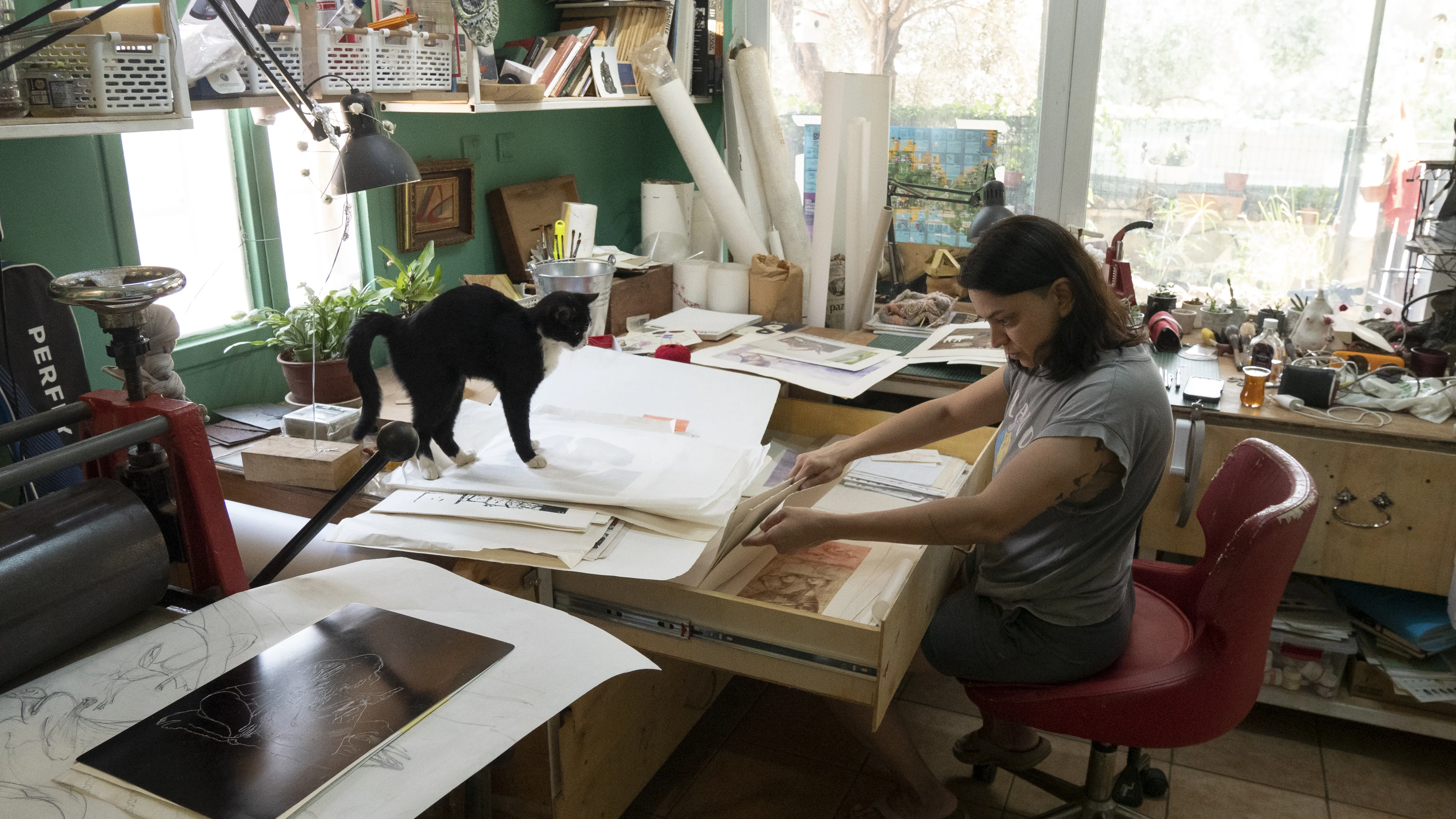 Shahnaz in her studio in Bodrum, Turkey, 2025.