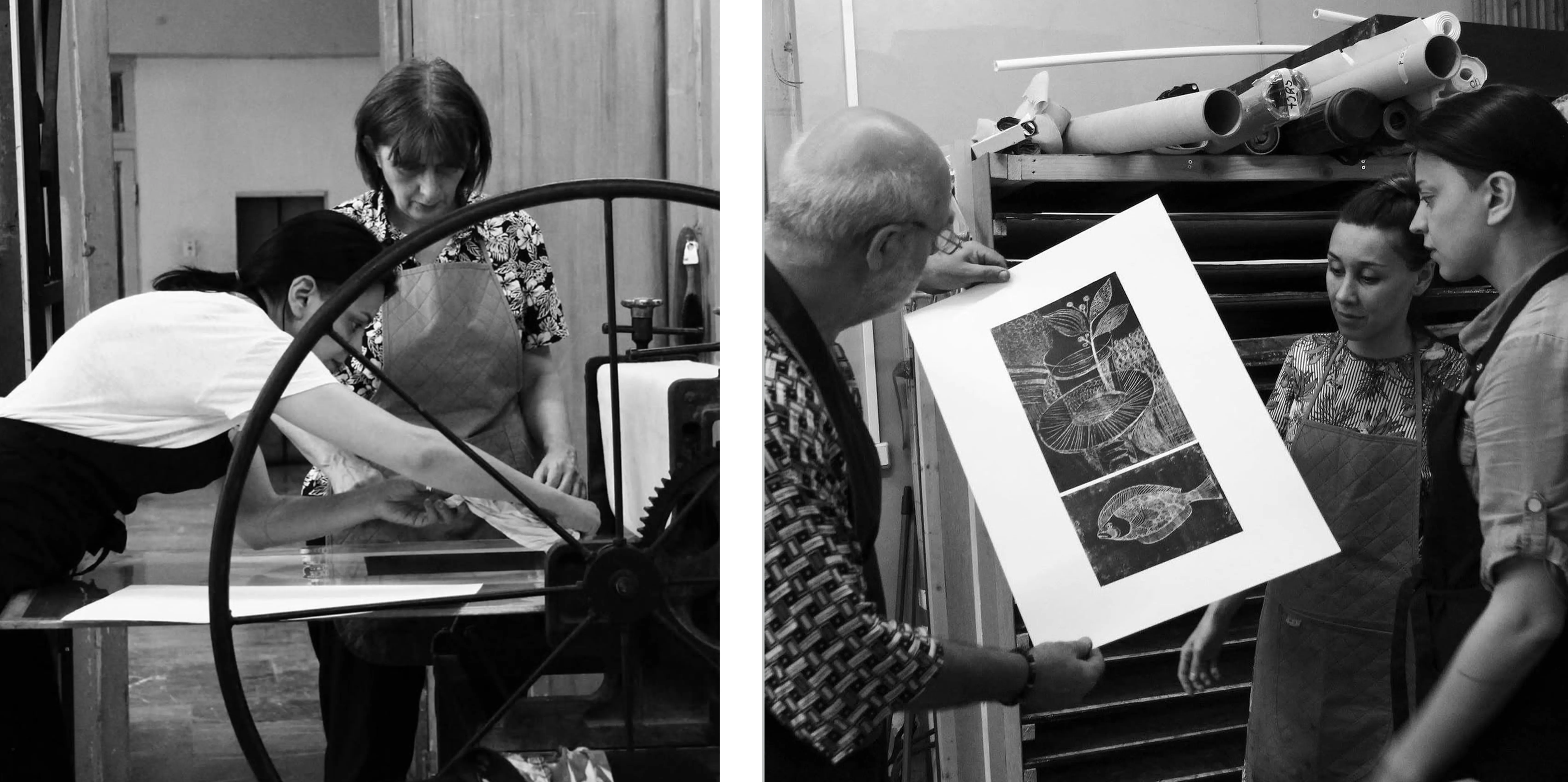 SHAHNAZ AGHAYEVA: For a long time after graduating, I didn’t make prints because oxidation is an extremely complex and hazardous process. Some of my professors even lost their teeth and hair due to the poor ventilation in the studios. When I travelled to Georgia to the studio of Vakhtang Megrelishvili, I was introduced to salt-based aluminium etching, a technique that is completely harmless. I learned it and became completely obsessed with printmaking.
