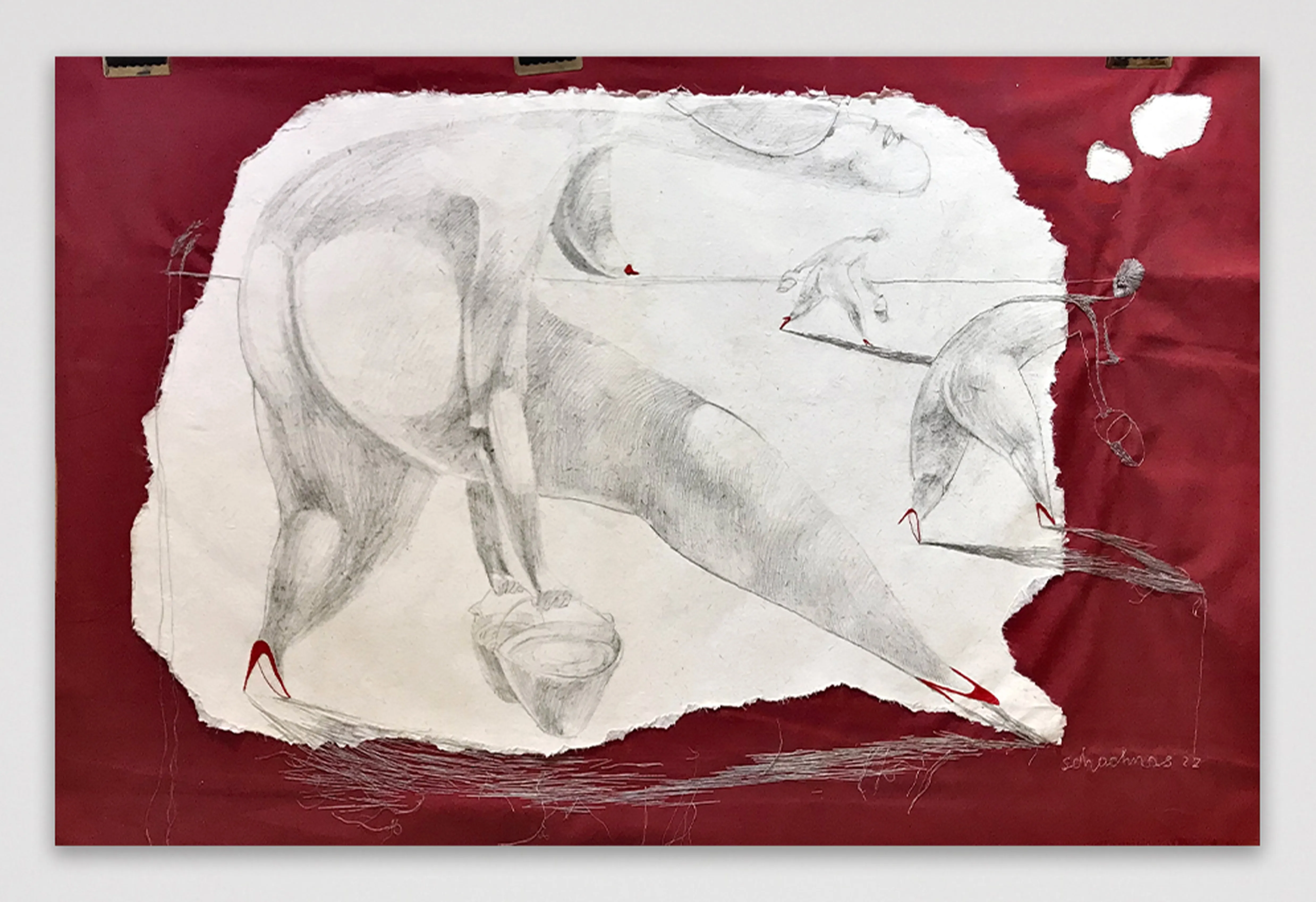 Building an artistic career in Baku, however, was extremely challenging. Every open call began with the same questions: “Who is your uncle? What family are you from? Who in your family is an artist?” Without connections, doors stayed closed. A turning point came in 2017, when I was accepted into the YARAT Contemporary Art Space residency and finally gained access to a proper studio. Until then, my works were too large even for my home, and after my children fell asleep, I would move all the furniture to unroll paper or canvas.