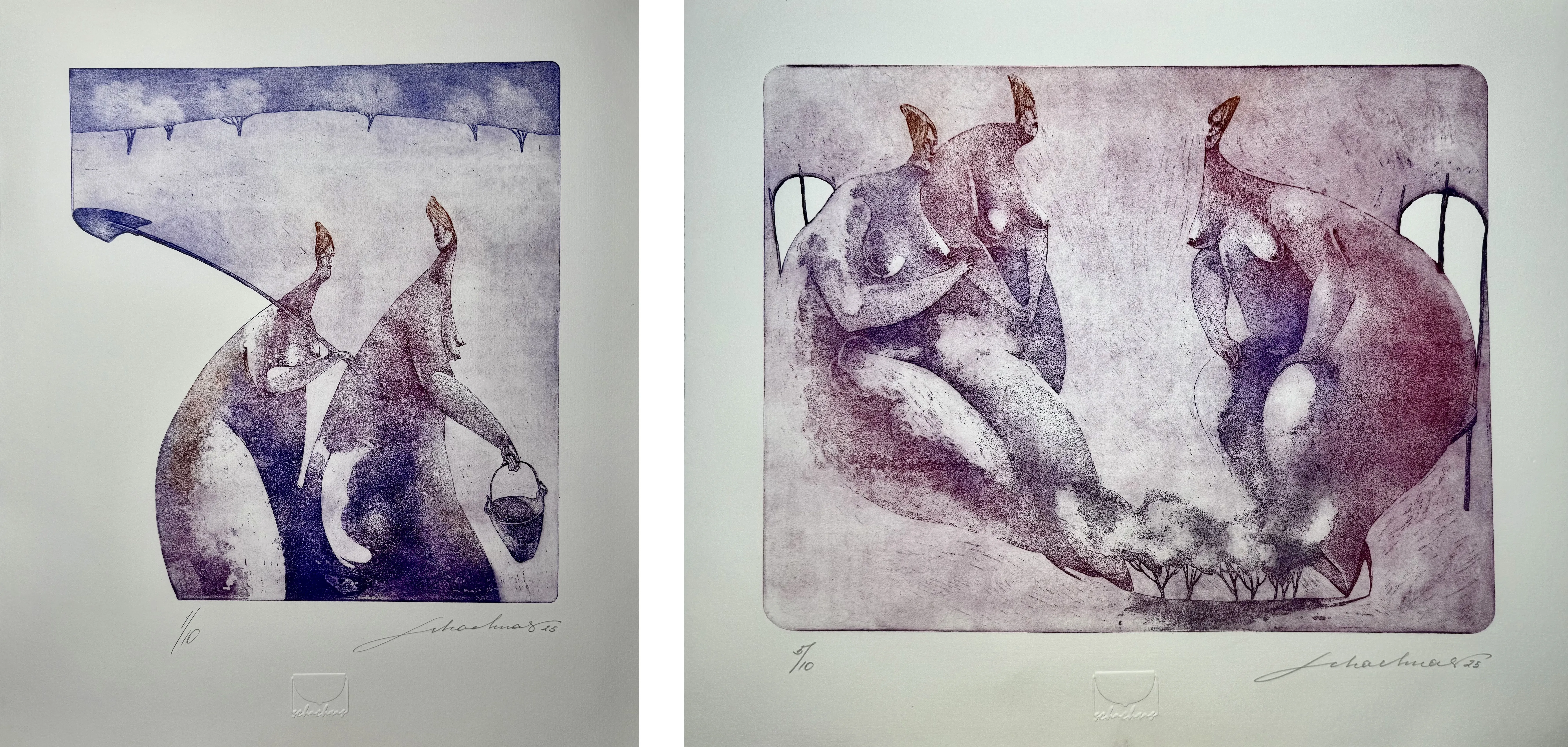 During this period, I created monumental etchings that could not be printed anywhere in Baku, and my professors suggested that I go to Georgia. There, I met Vakhtang Megrelishvili, Professor of Graphics at the Georgian Academy of Art. Initially, he refused to help, asking why he should invest his time in me. I told him, “If I don’t make this print, I will die.” He agreed, and I went on to print my works and assist other artists in the studio.